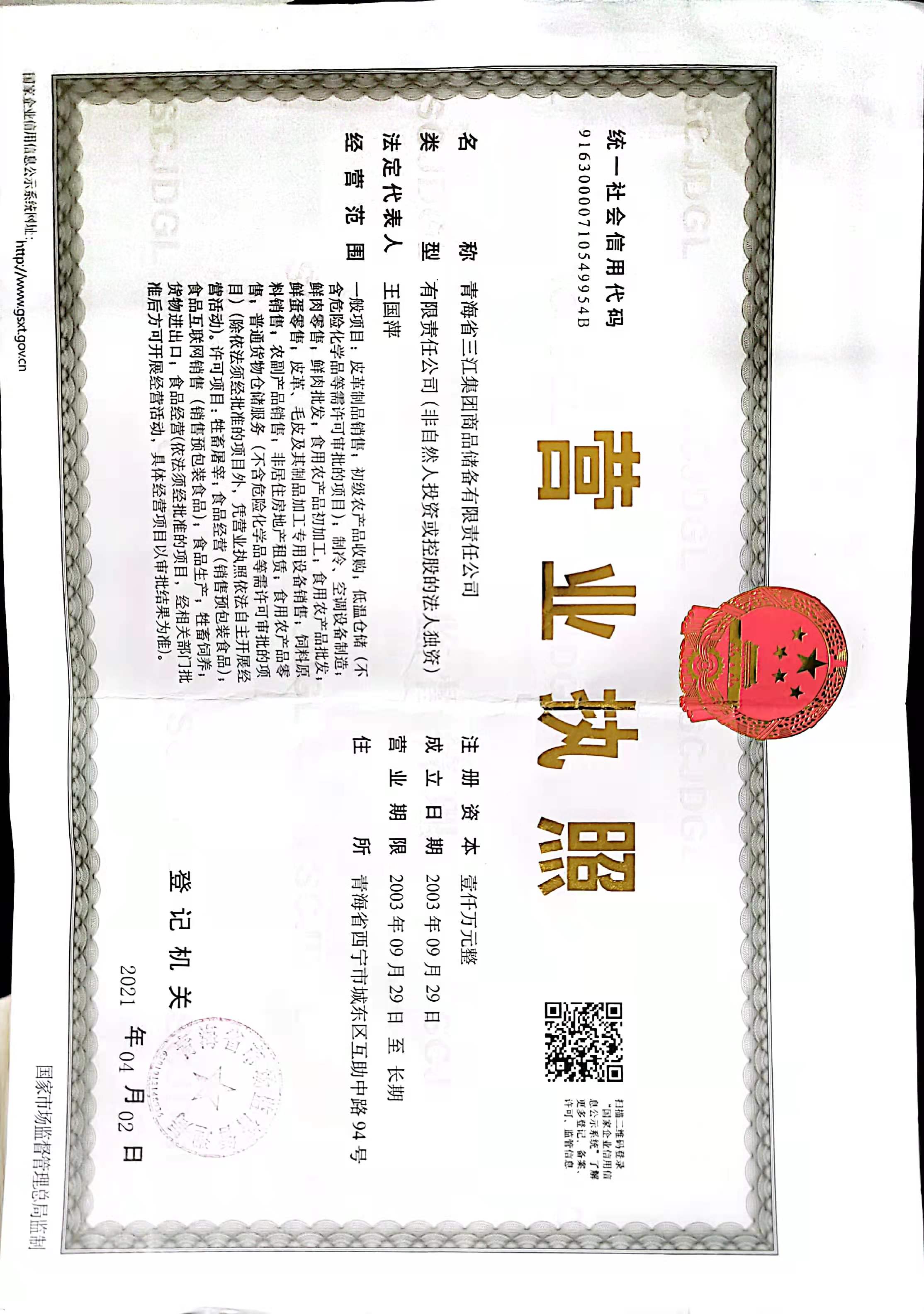 青海省三江集團商品儲備有限責任公司及所屬子公司工商信息公開