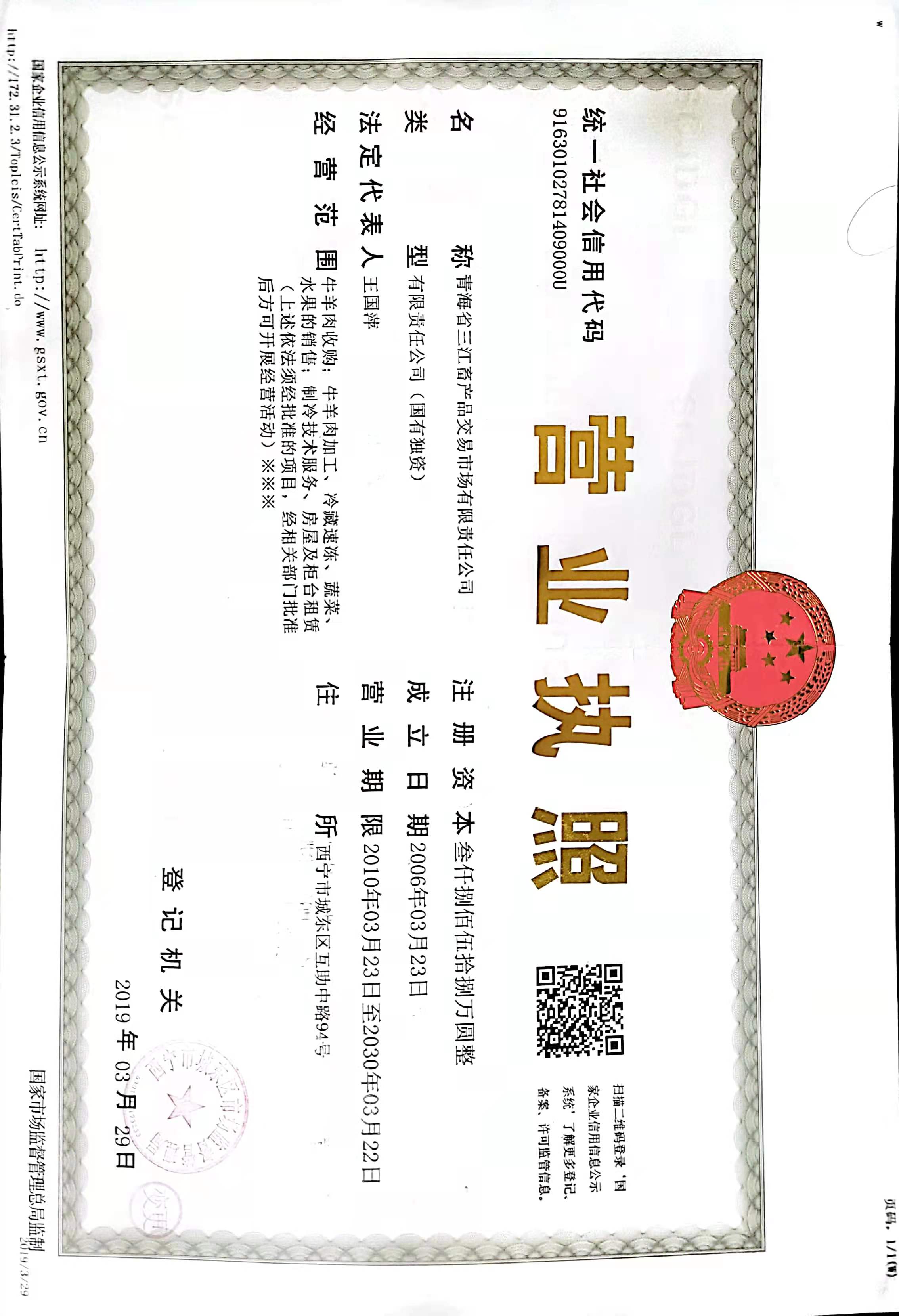 青海省三江集團門源種馬場有限責任公司及所屬子公司工商信息公開