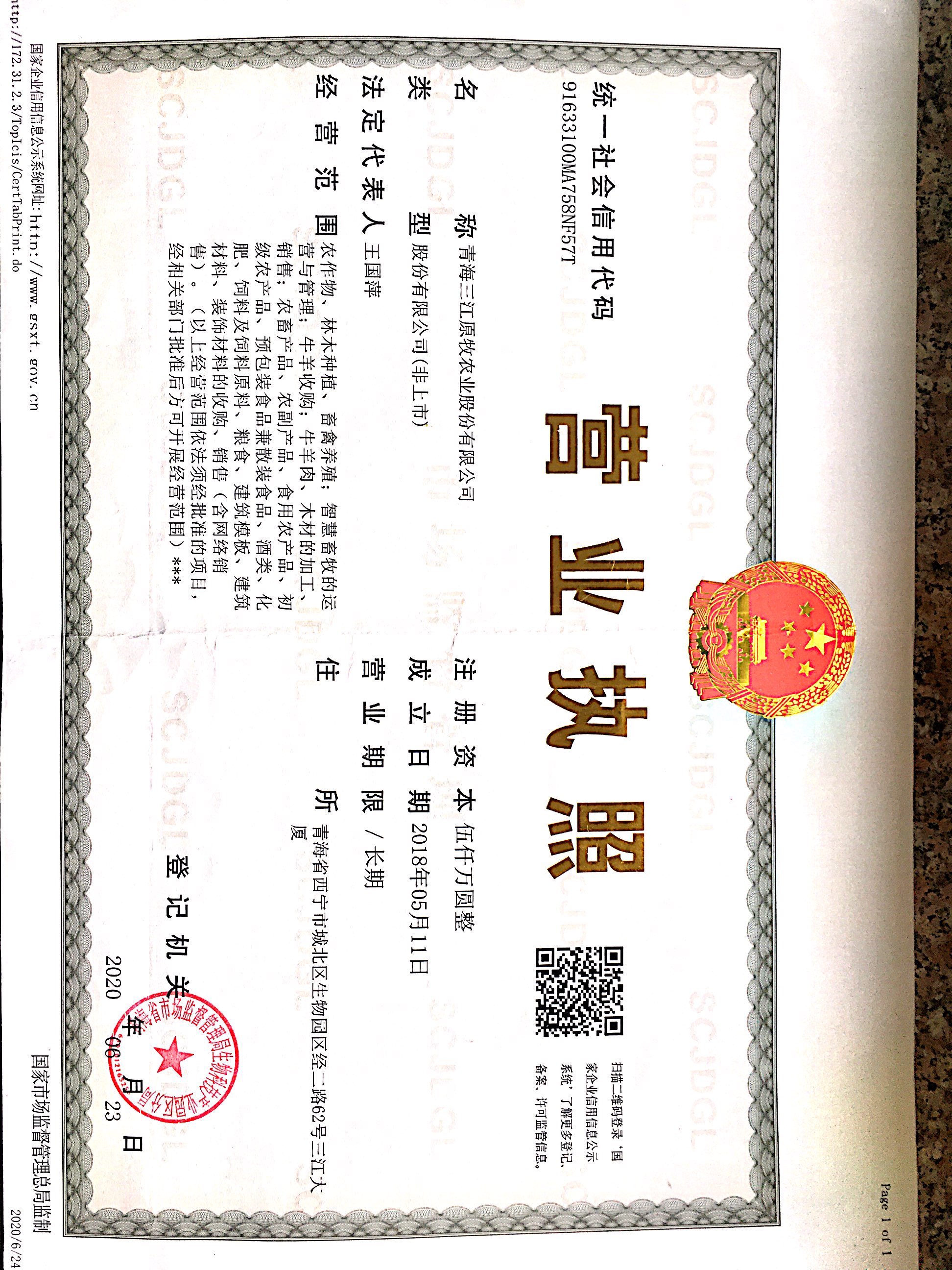 青海省三江原牧農(nóng)業(yè)股份有限責(zé)任公司及所屬子公司工商信息公開(kāi)