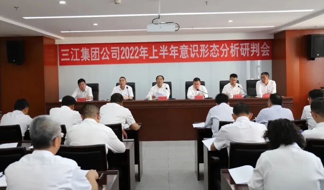 7月29日下午,三江集團黨委召開2022年上半年意識形態(tài)工作分析研判會,總結回顧和分析研判當前意識形態(tài)領域情況,安排部署下半年意識形態(tài)工作,全面落實意識形態(tài)工作責任制。集團公司黨委書記、董事長馬榮華出席會議并講話,集團公司領導班子成員、機關各部室負責人、所屬各單位黨委書記、黨委副書記、黨群部門負責人參加會議。會議由黨委委員、副總經理薛勤斌主持。